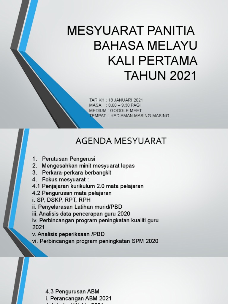 Mesyuarat Panitia Bm Bil 1 2021 Pdf