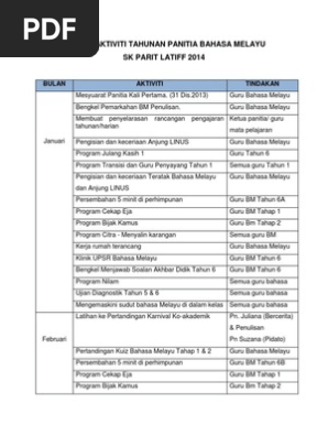 Takwim Aktiviti Tahunan Panitia Bahasa Melayu 2014 Pdf