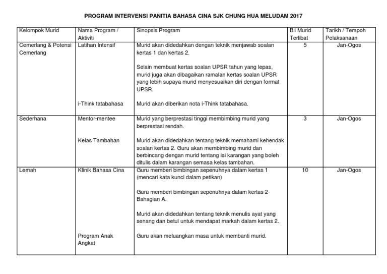 Program Intervensi Panitia Bahasa Cina Pdf