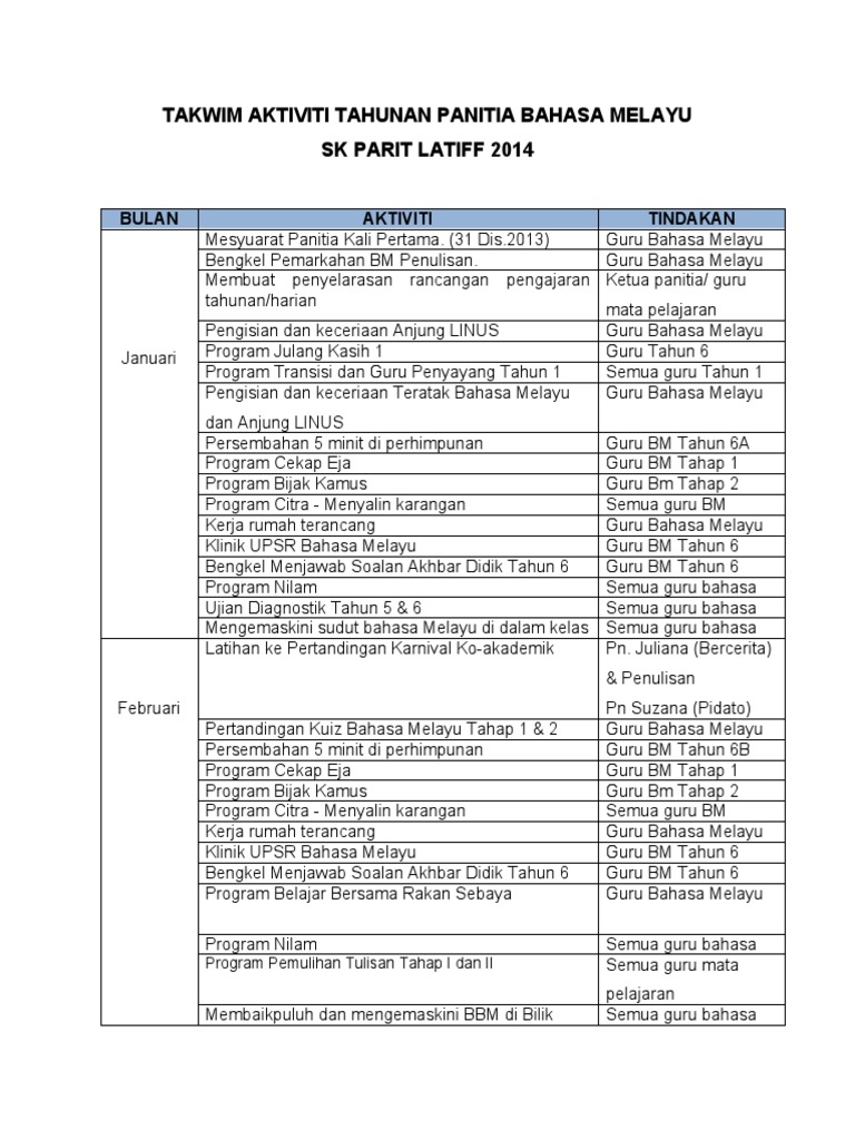 Dokumen Tips Takwim Aktiviti Tahunan Panitia Bahasa Melayu 2014 Pdf